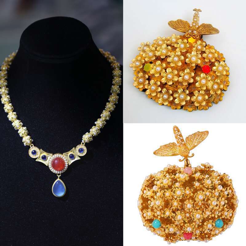 花间游闹蛾扑花系列配饰、珠玉星河系列首饰套装、幺蛾子毛绒挂件……展览配套的李静训文创系列,也同步和观众见面,隋代风华走进日常生活。